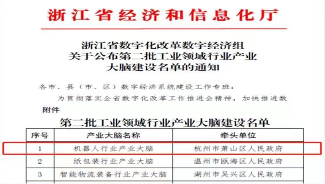 機器人行業(yè)產(chǎn)業(yè)大腦”項目成功入選,是杭州市唯一一個入選的產(chǎn)業(yè)大腦!