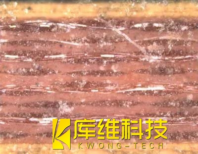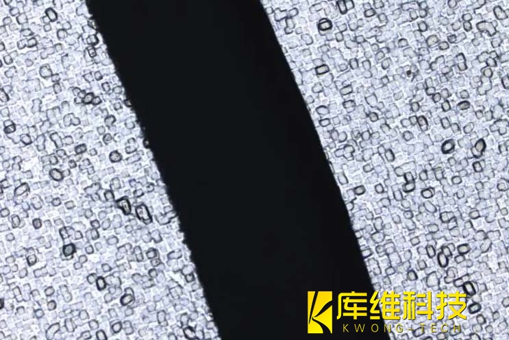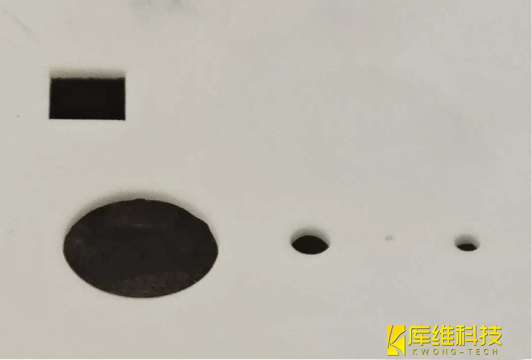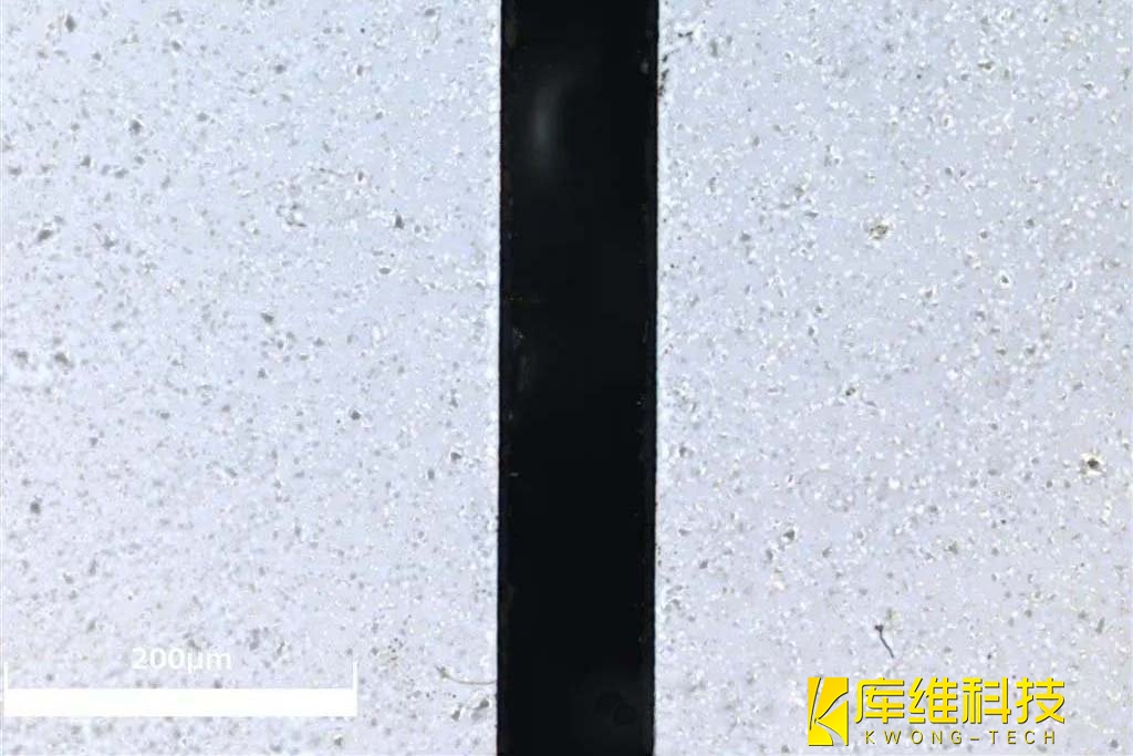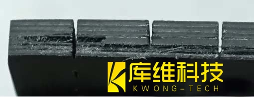 如圖所示,硬質(zhì)PCB板經(jīng)過加工后,斷面平整,無明顯熱影響區(qū)(成功解決了傳統(tǒng)激光加工易導(dǎo)致產(chǎn)品發(fā)黑的問題)。