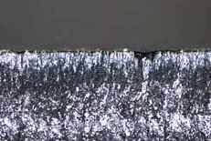 請見圖所示,該圖展示了厚度為3~4mm且外表鍍鎳的磁鐵經(jīng)加工后截面對比及截面微觀組織細(xì)部。