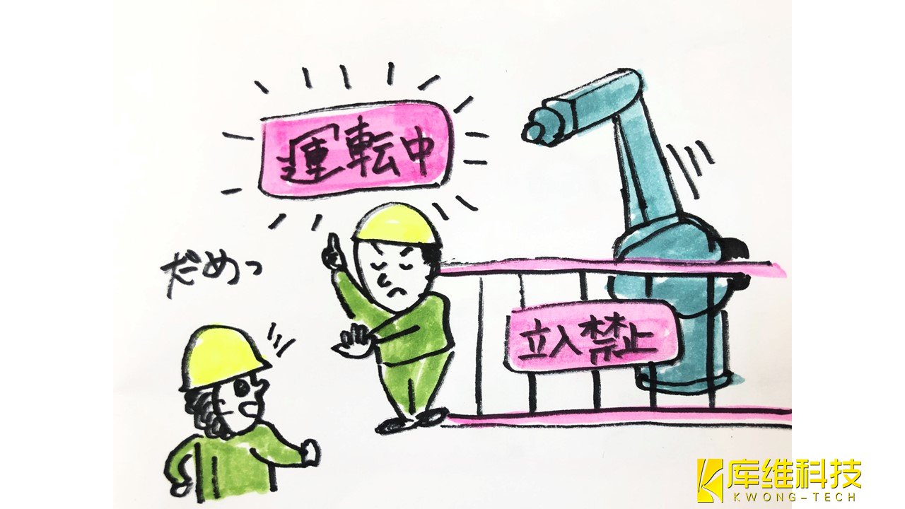 在操作工業(yè)機(jī)器人時(shí)(除了在教學(xué)等工業(yè)機(jī)器人駕駛過程中),如果工人接觸到工業(yè)機(jī)器人,可能會有危險(xiǎn)。在這種情況下,必 須采取必要的措施來防止危險(xiǎn),例如提供圍欄或圍墻。
