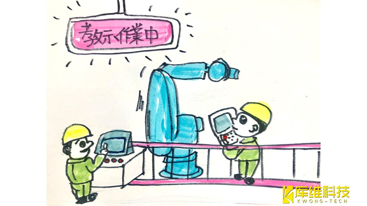 其中之一是“以緊張感進(jìn)行教學(xué)”。此外,在教學(xué)工作中,不能只關(guān)注工具的尖端,而是將意識傳播到整個工業(yè)機(jī)器人,繼續(xù)工 作,同時(shí)始終保持意識中不可預(yù)知的危險(xiǎn)。