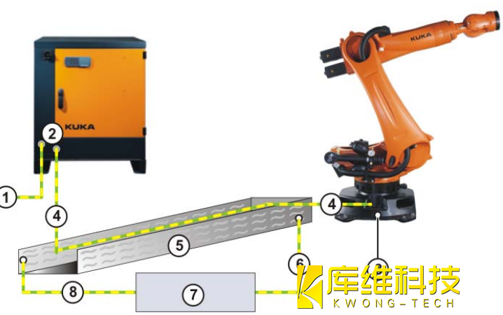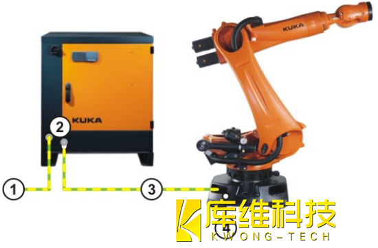 連接在配電柜中心接地導軌與機器人控制系統接地螺栓之間的附加接地導線。