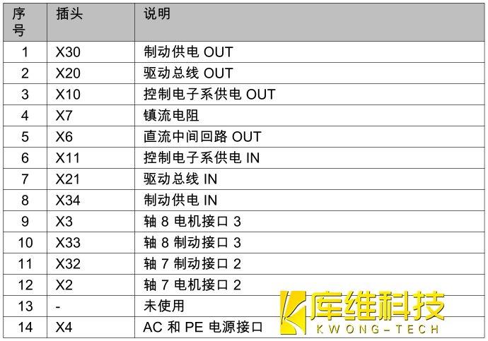 警告:若將機器人控制系統(tǒng)關斷,下列部件仍可能在長達 5 分鐘的時間內(nèi)帶電 (50 … 780 V):