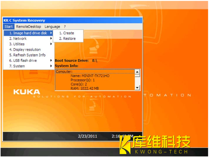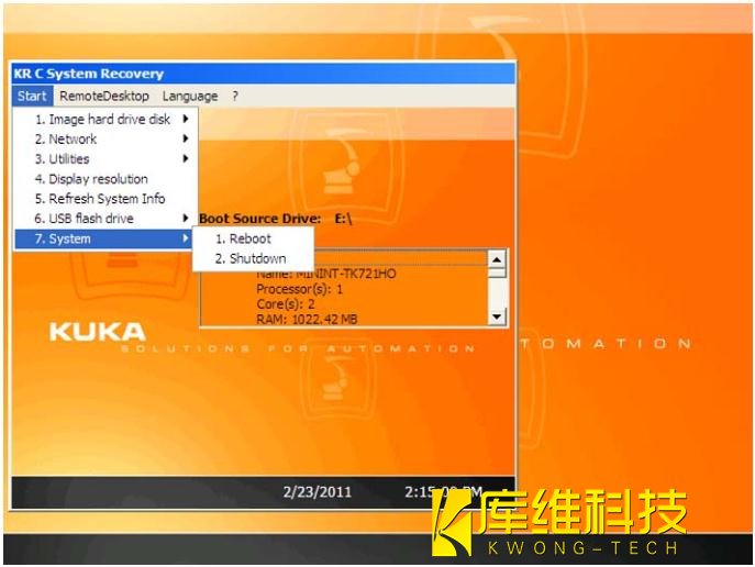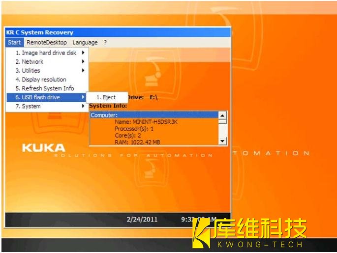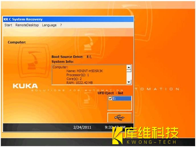 2. 插上具有起動(dòng)功能的庫(kù)卡 U 盤,然后重啟控制系統(tǒng)。