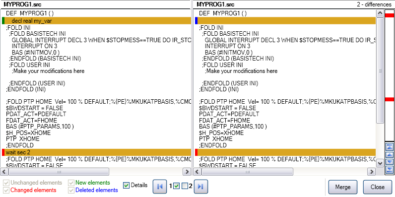 4. 當(dāng)進(jìn)度條已填滿且出現(xiàn)狀態(tài)顯示 “ 合并準(zhǔn)備就緒 ” 時(shí), 點(diǎn)擊 【 顯示區(qū)別】鍵。 項(xiàng)目之間的差異即以一覽表的形式顯示出來。若未發(fā)現(xiàn)差異,則在信息窗口中顯示與此相關(guān)的訊息。 繼續(xù)執(zhí)行第 ?8 步。隨后無需執(zhí)行后續(xù)步驟。